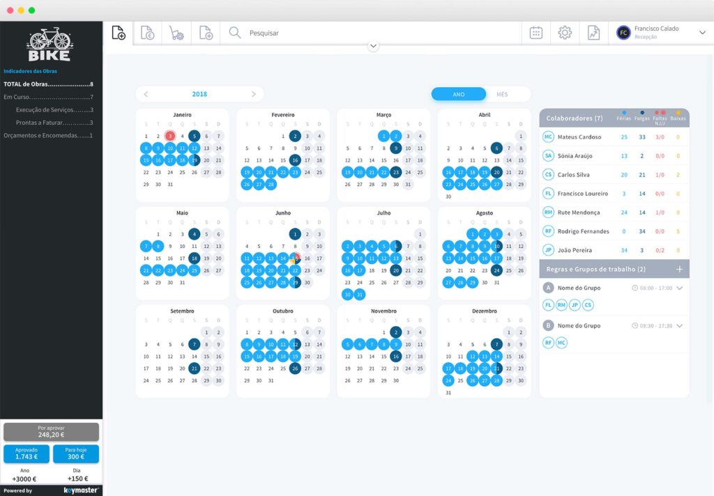 - Registo e Justificação das ausências dos colaboradores de forma documentada, integrada e organizada
