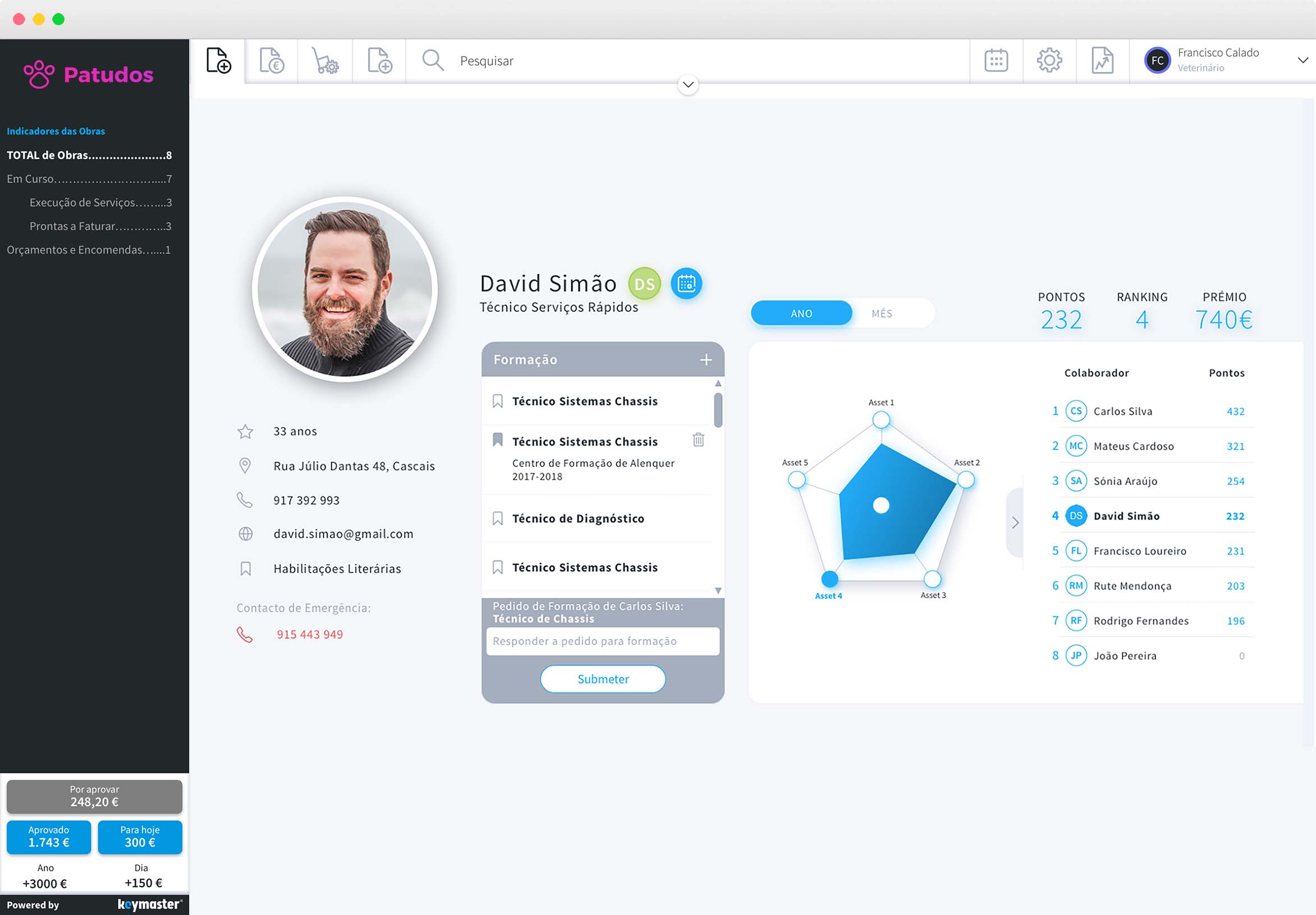 - Perfis e Interfaces à medida de cada Utilizador, desenhados para corresponder à realidade e permissões de cada um dos Intervenientes